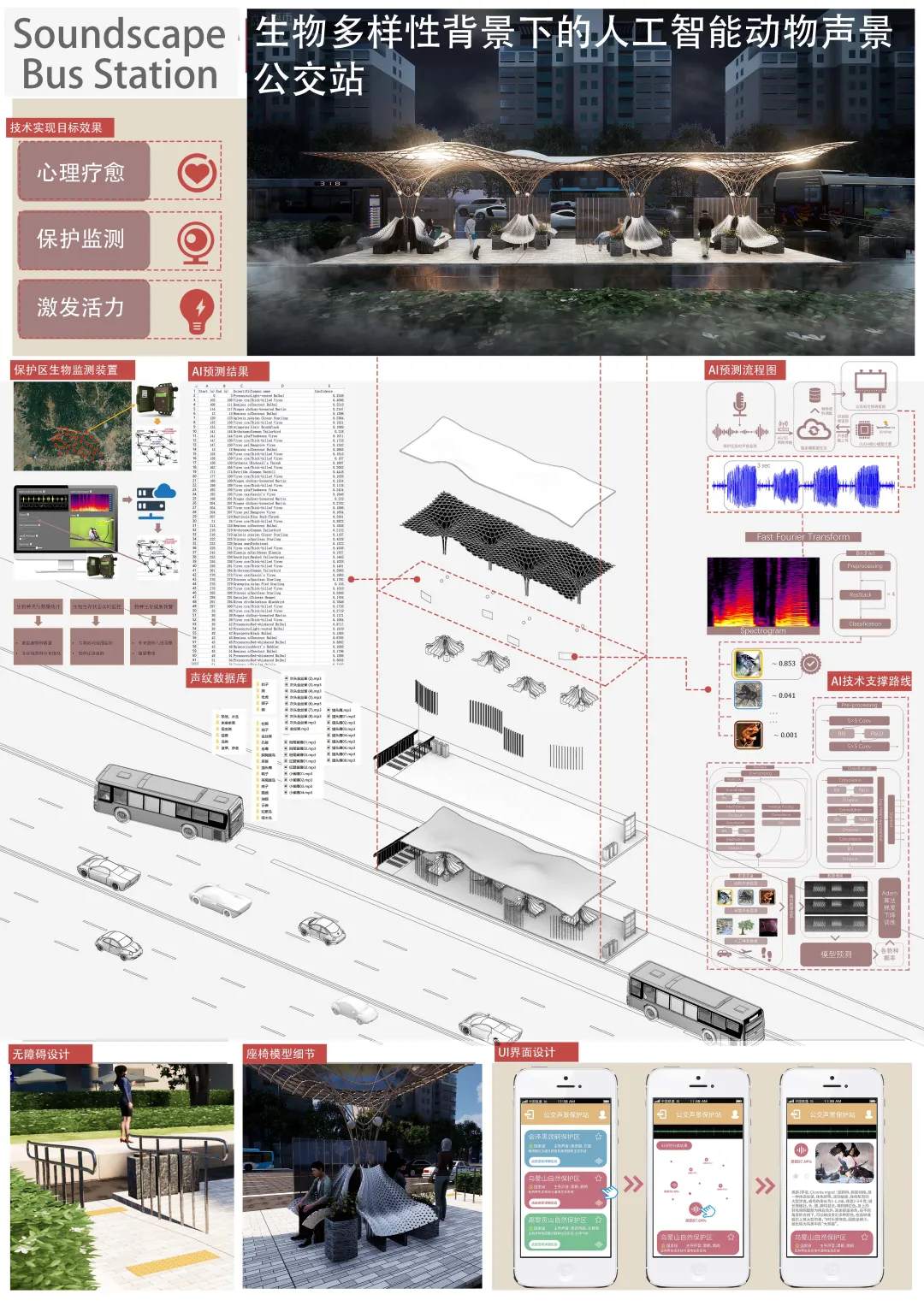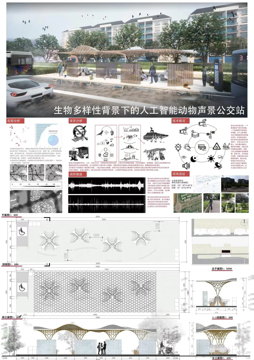 由邓智骁、韩理光、谭良斌三位老师指导的研究生参赛作品《生物多样性背景下的动物声景公交站》荣获大赛一等奖。作品依托于云南地域特色、充分发挥了成人视频