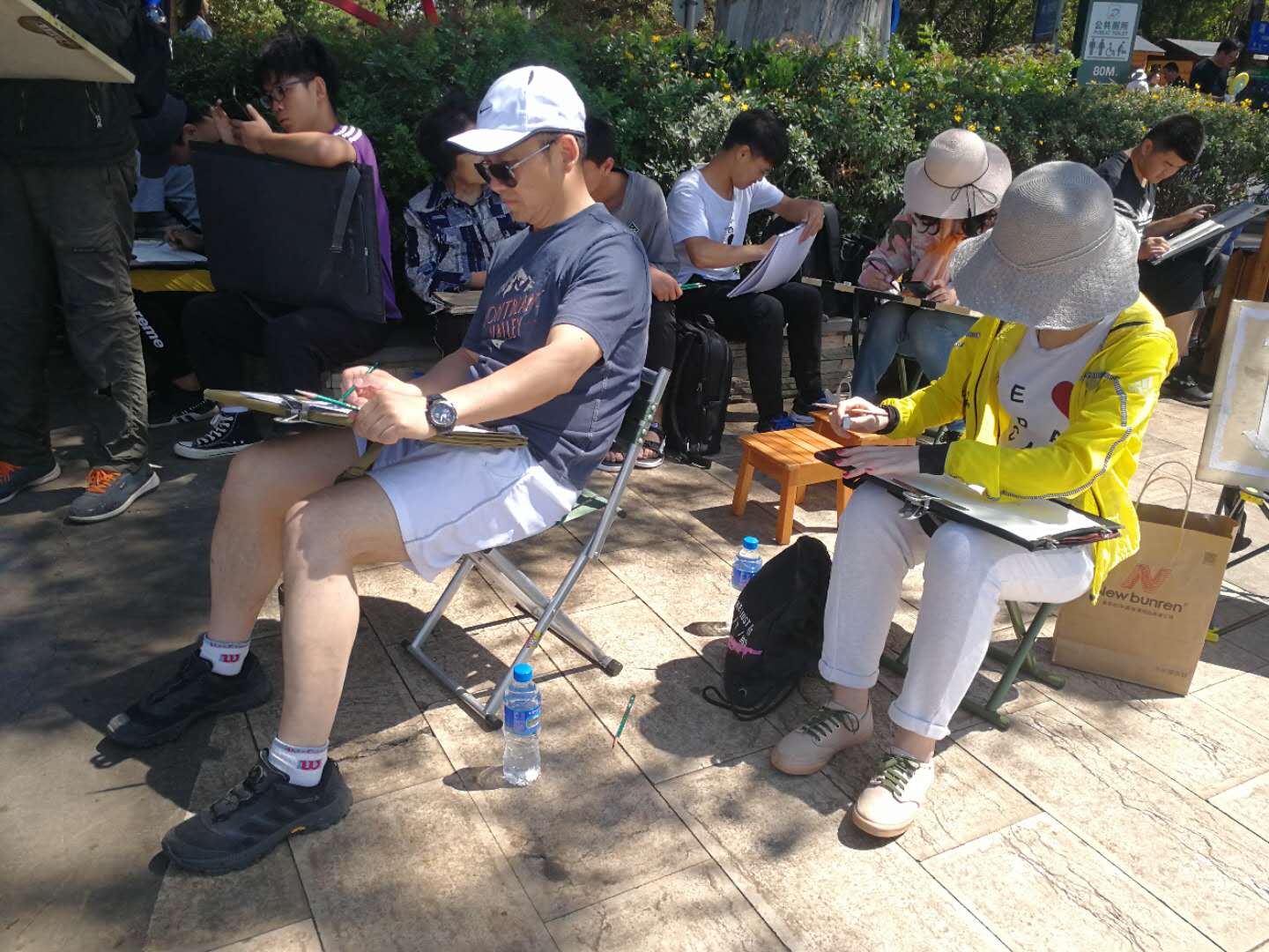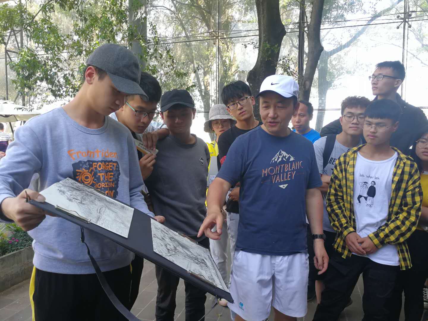5月18日,副校长周峰越教授来到昆明海埂公园深入到我校建筑学院18级园林专业《美术2》的素描风景写生课当中,和同学们一道交流并一同现场写生。