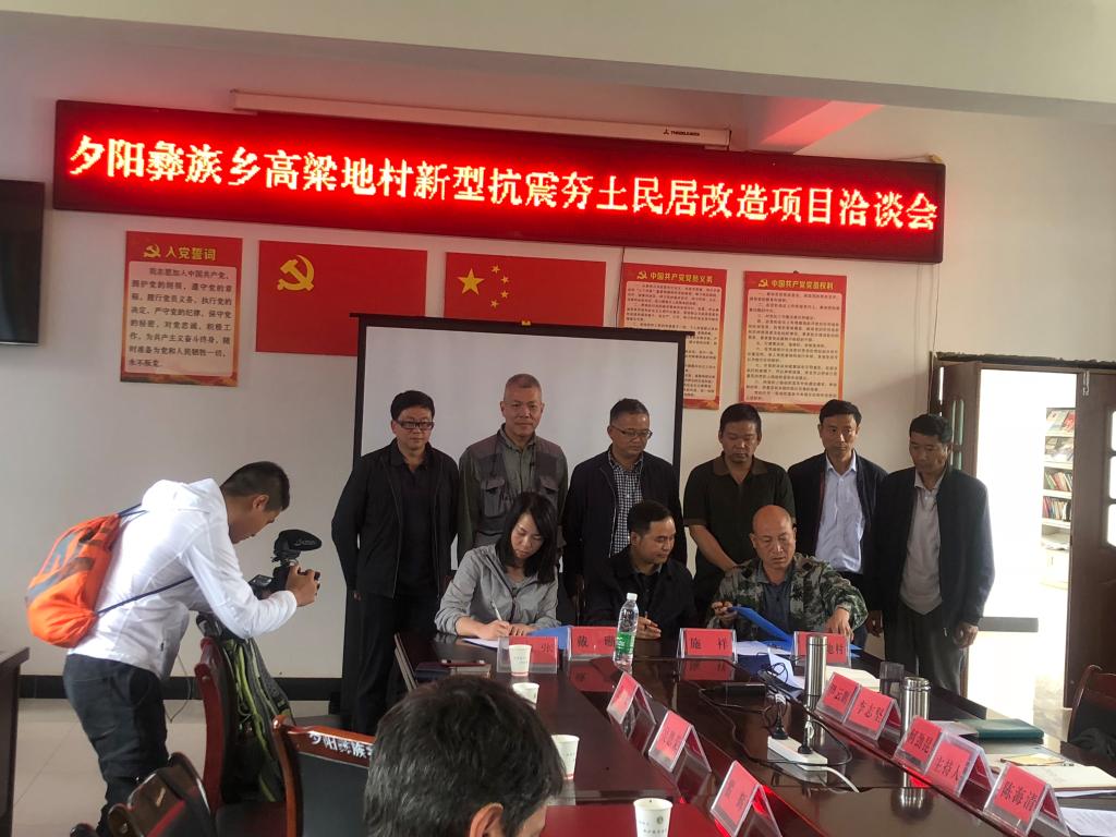 通过三方的洽谈,达成如下共识:一是通过该项目将高粱地村打造成为全国第一个整村覆盖的新型抗震夯土村落,并将建造技术传授给高粱地村村民;二是第二个项目将分两期重建66户农宅的村落改造,培养100名生土建造技术专业工匠;三是当地将夕阳乡定位为生态旅游乡,高粱地村的整村设计规划由我校建筑学院负责。