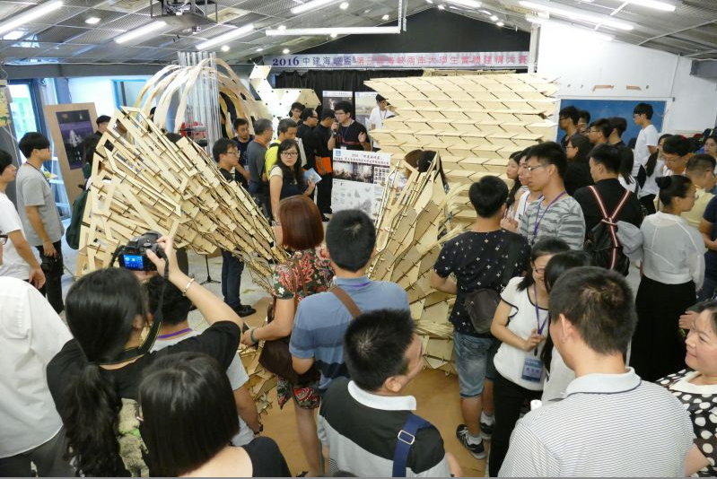 由中华青年交流协会、东南科技大学、中建海峡建设发展有限公司(大陆)以及清华大学学生科协(大陆)共同举办的“中建海峡杯第三届海峡两岸大学生实体建构大赛”于8月17、18日两天在台北市四四南村进行比赛。此次赴台参加比赛的大陆高校分别是西南交通大学、清华大学、东南大学、湖南大学、哈尔滨工业大学、昆明理工大学、浙江工业大学、福州大学以及沈阳建筑大学共计9所学校,台湾则有6支队伍共计4所学校参加,分别是东南科技大学、中国科技大学、淡江大学以及中国文化大学,合计共15支队伍参加。