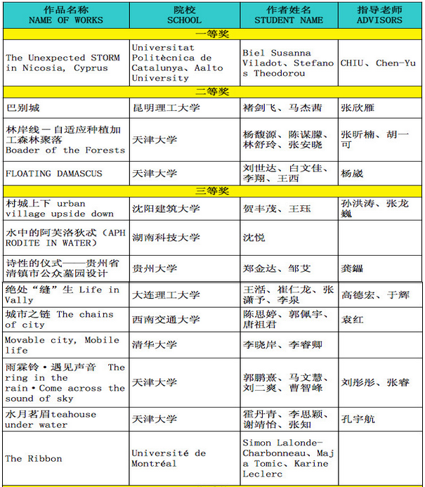 的参赛作品《巴别城》(指导教师张欣雁,参赛学生2012级建筑学专业储剑飞、马杰茜)以获得二等奖(排名第一),城市学院与河北理工大学联合参赛作品《迁徙》(指导教师赵蕾)获得优秀奖。