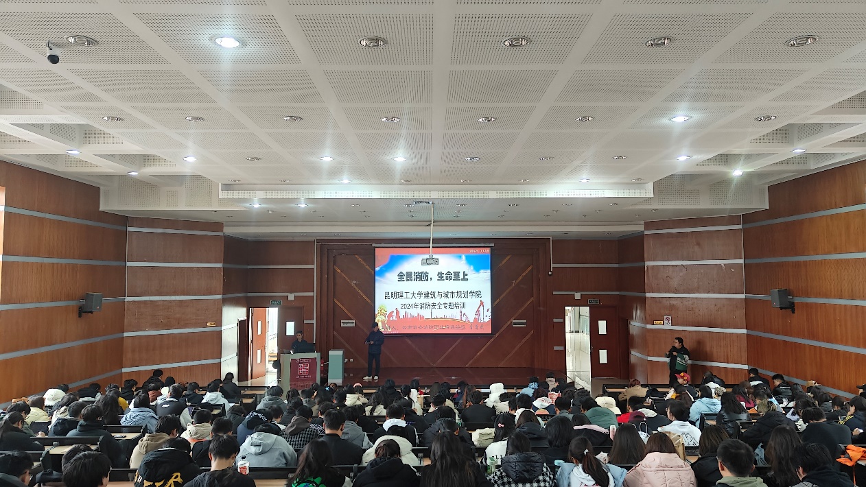 于2024年12月19日在建筑200报告厅展开安全教育知识培训课程,学院实验室相关部门老师、本科和研究生辅导员,以及2024级研究生和本科生共计300余人参加本次安全教育培训。