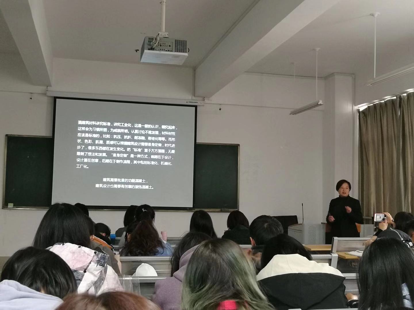 2018级建筑专业的同学们学习建筑材料与构造课程已经过了大半个学期,对各种材料、构造都有了初步的了解。为了加强同学们对建筑材料更深一步的认识,学院举办了一次建筑材料构造开放课程主题讲座。本次讲座主题为砼的故事·装饰混凝土艺术墙板,由建筑系建筑技术组李倩老师主持,由学院特邀的昆明宝贵建材有限公司的技术总监李林峰、营销总监赵静主讲。