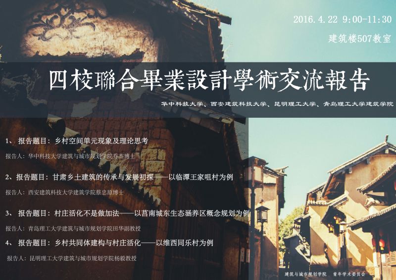 下一条:讲座:历史的印记—巴蜀传统场镇空间环境特色探析...
