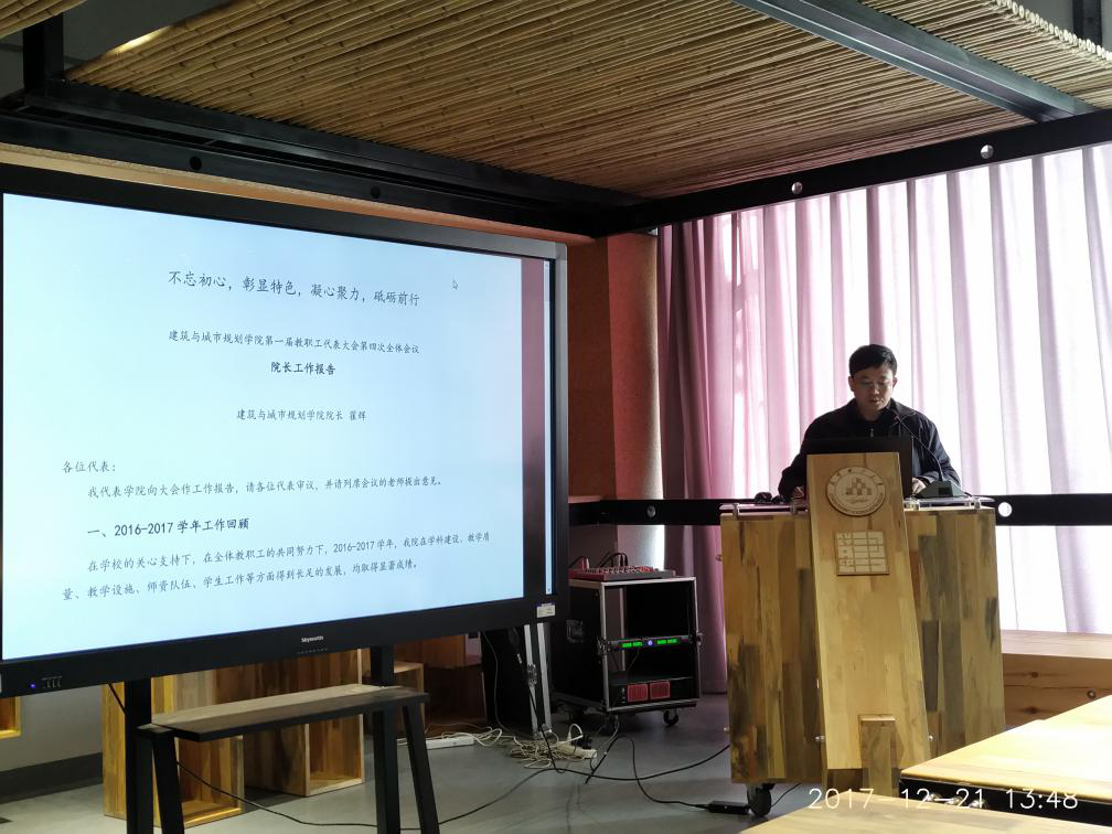 第一届第四次教职工代表大会在呈贡校区建筑楼205召开。校工会王玉副主席亲临现场致辞,高度肯定学院工会的工作,并预祝本次教代会圆满成功。