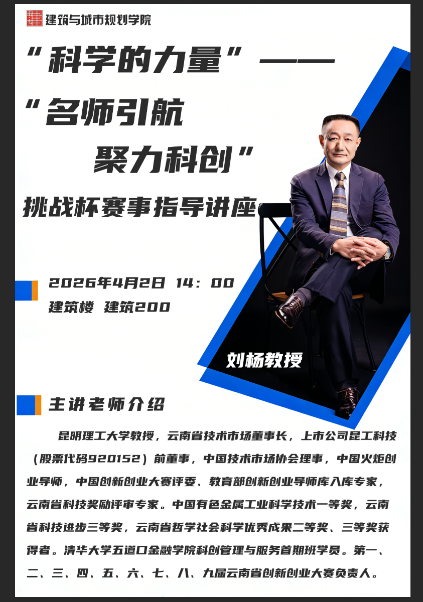 挑战杯赛事指导讲座“科学的力量——名师引航,聚力科创”